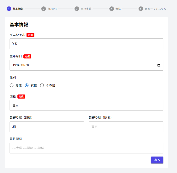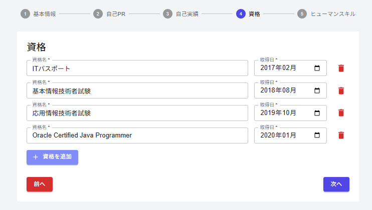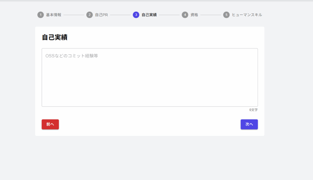 1画面ずつ進めていけるので、スキルログなら時間がない方でもコツコツ作成可能です。