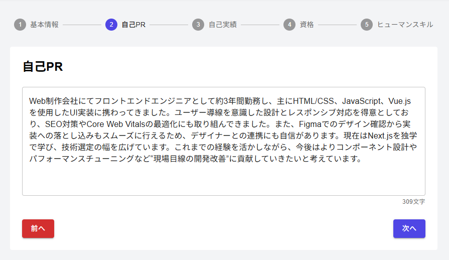 ⇒「FigmaでのUI設計に基づき、Vue.jsを用いて管理画面を実装。複雑だった操作フローを改善し、ユーザーの導線を半分以下に短縮しました。」