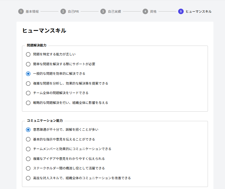 スキルログでは以下のような能力項目について5段階評価を行います: